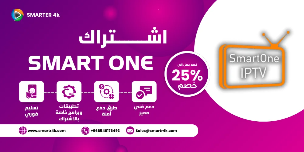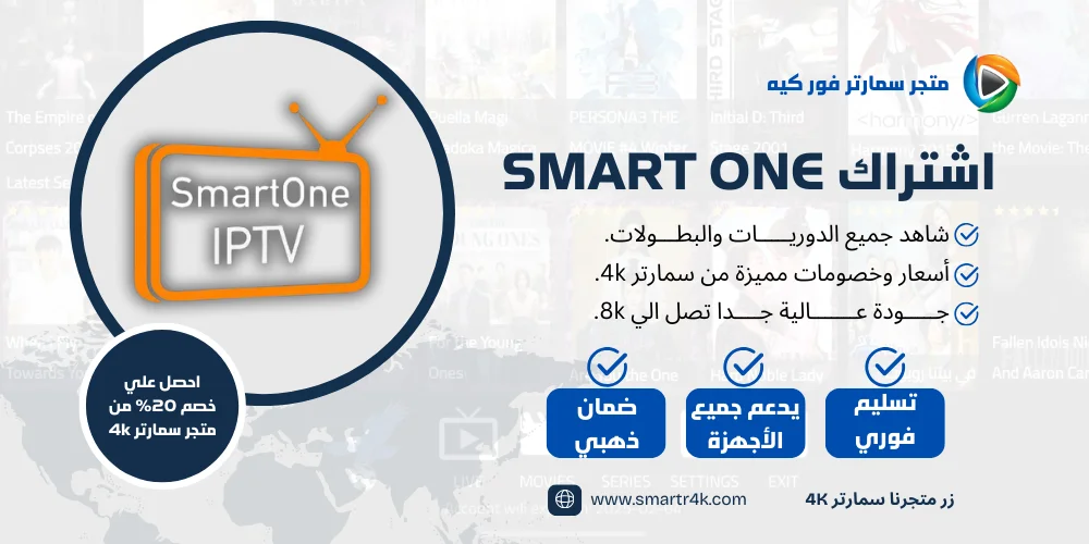 يوفر لك اشتراك Smart One IPTV أكثر من 8,000 قناة وما يزيد عن 20,000 فيلم ومسلسل. متجر Smarters 4K يقدم لك كود تفعيل Smart One IPTV بأسعار تنافسية، بالإضافة إلى روابط تحميل تطبيقات Smart One وطريقة التشغيل. متجر سمارتر 4k يوفر لك أفضل اشتراكات IPTV بدون تقطيع بأفضل الأسعار ومن خلال هذه الصفحة يمكنك شراء اشتراك Smart One بسعر مميز مع تسليم فوري للاشتراك، سنوضح لك كل هذه التفاصيل في السطور التالية.