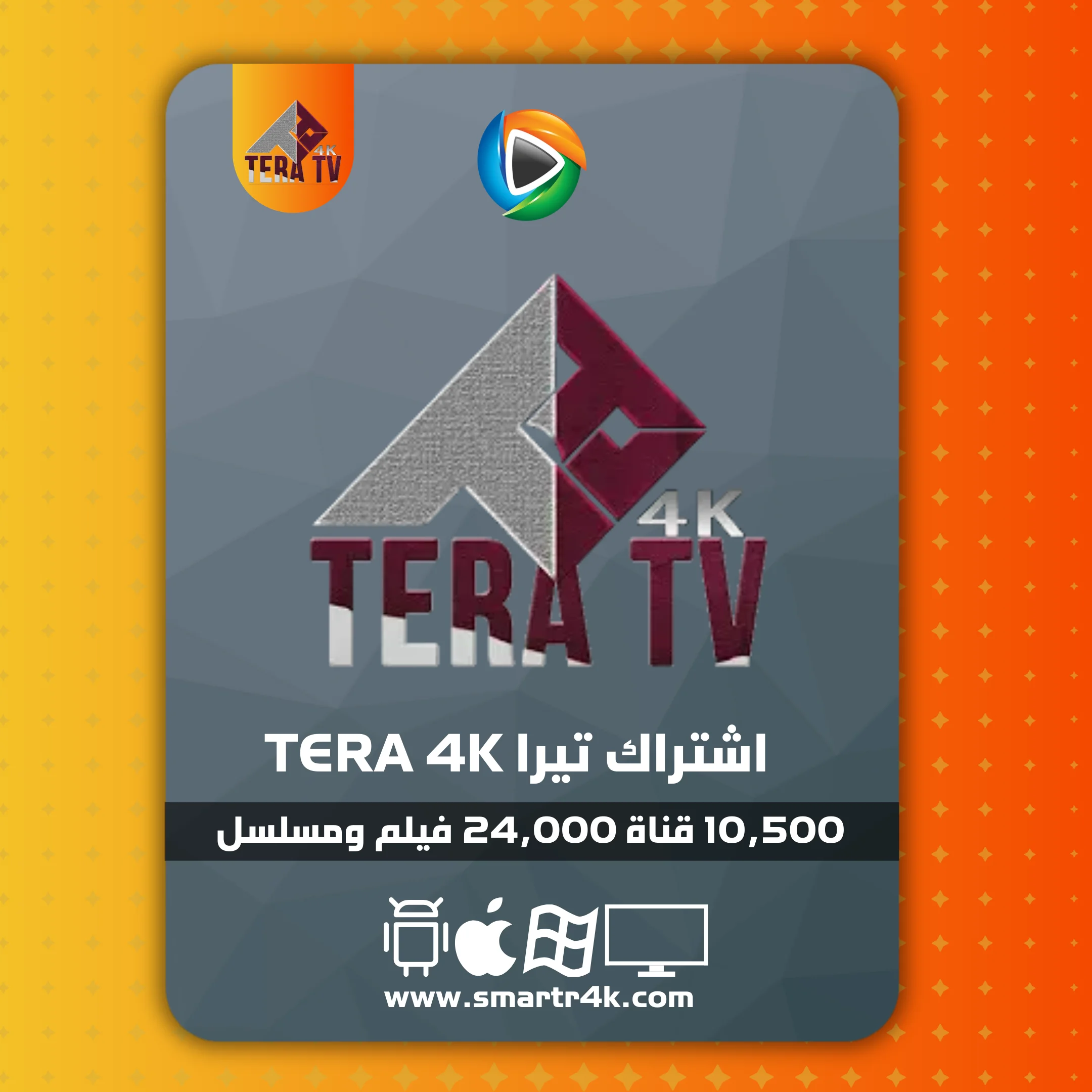 يوفر لك اشتراك تيرا Tera 4k Tv أكثر من 10,500 قناة وما يزيد عن 24,000 فيلم ومسلسل. كود تفعيل تيرا 4K بأسعار تنافسية، بالإضافة إلى روابط تحميل التطبيقات.